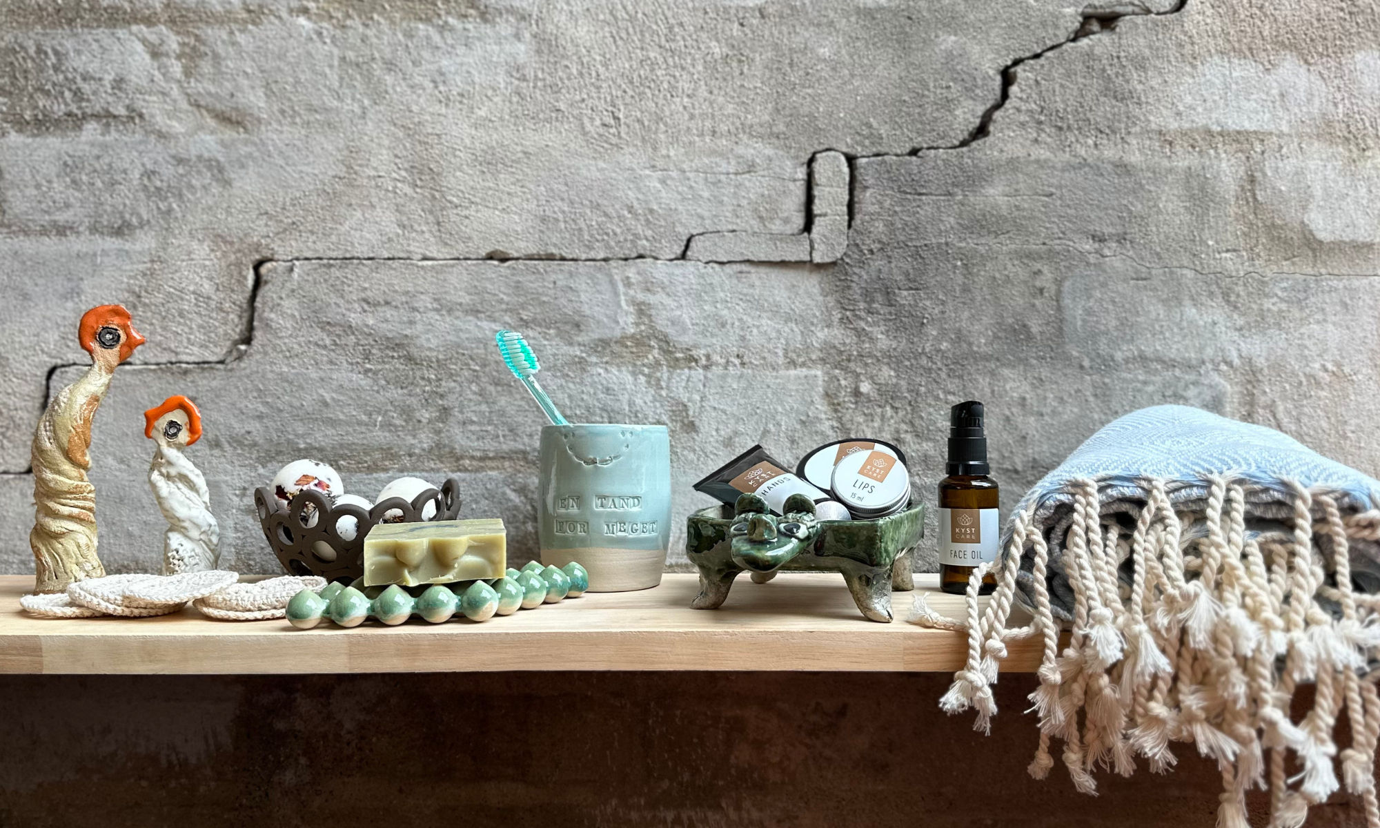 en keramisk sæbeskål fra Camilla Gaugler eller lækkert velvære fra Kystcare.?🫧