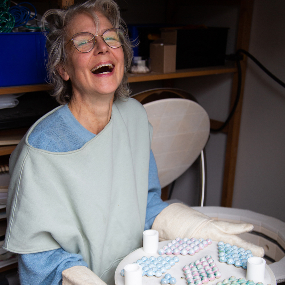 Den danske kunstner Vibeke Hørlyck håndformer og håndmaler selv alle debatdyr, på eget værksted i Lunderskov.
