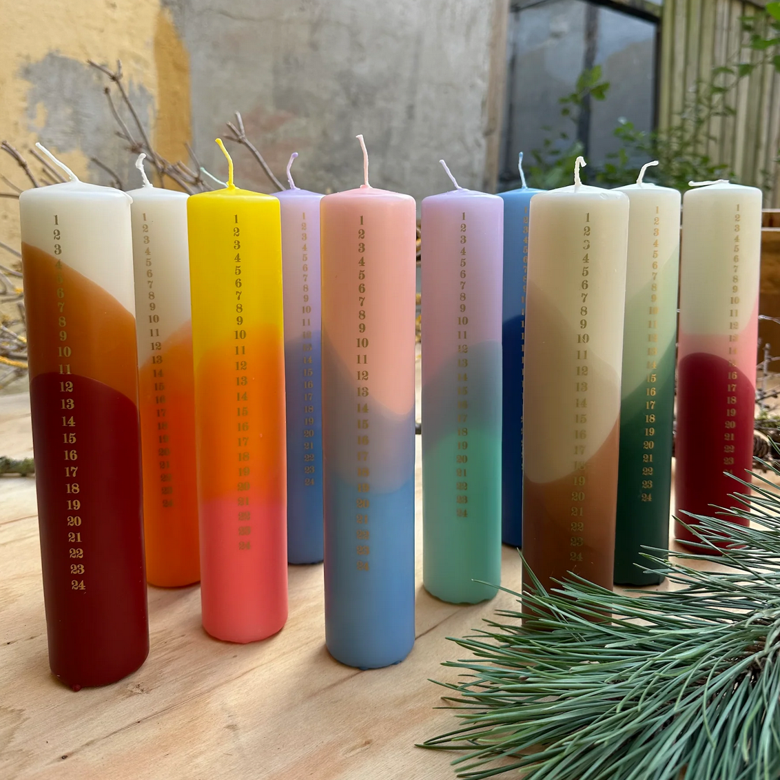 Yderst fint håndlavet kalenderlys af høj kvalitet, i et flot design med skønne farver.!